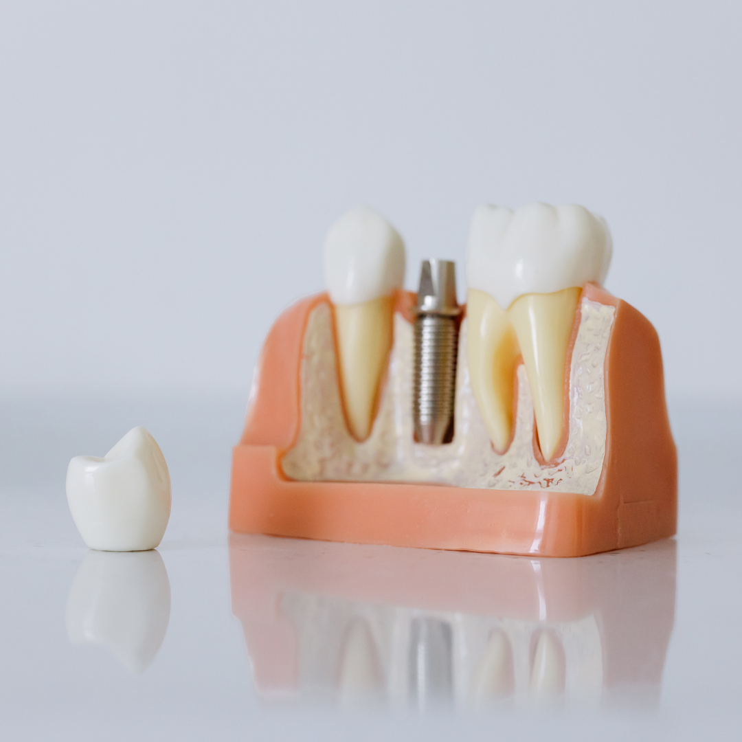 Dental implants are an advanced method of replacement for missing teeth. Single-tooth implants consist of a titanium post that is placed with surgical precision into the jawbone, a stainless steel abutment, and a dental crown to complete the look and feel of a natural tooth.